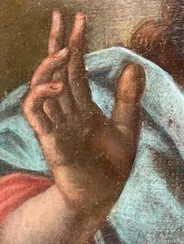 Il dipinto raffigura Cristo benedicente nell’iconografia del Miracolo della moltiplicazione dei pani e dei pesci, episodio evangelico narrato nei Vangeli sinottici (Matteo 14,13–21; Marco 6,30–44; Luca 9,10–17).