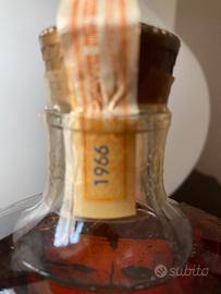 Seagram's Crown Royal 1966 - Legendary Waterloo Distillery - Blended Canadian Whisky - 4/5 Quart - Original Purple Bag & Tax Strip Panoramica Storica Raro ed eccezionale esemplare di Crown Royal imbottigliato nel 1966. Questo whisky non è solo un distillato vintage, ma una testimonianza liquida della storica distilleria Seagram di Waterloo (Ontario). Chiusa definitivamente nel 1984, la distilleria di Waterloo è celebre tra gli esperti per aver prodotto i blend più ricchi e complessi nella storia del marchio, molto diversi dalle versioni moderne prodotte a Gimli. Dettagli del Pezzo • Produttore: Joseph E. Seagram & Sons Limited. • Origine: Waterloo, Ontario, Canada. • Anno di Imbottigliamento: 1966 (confermato dal sigillo fiscale originale). • Formato: 4/5 Quart (Formato vintage USA/Canada, circa 75,7 cl). • Gradazione: 80 Proof (40% Vol.). • Accessori: Include l'iconico sacchetto protettivo in velluto viola originale con ricami dorati. Stato di Conservazione (Condition Report) • Sigillo Fiscale (Tax Strip): Perfettamente integro, di colore arancione/giallo, riportante chiaramente l'anno 1966. La carta è in ottime condizioni, senza strappi significativi. • Livello del Liquido: Eccellente per una bottiglia di 60 anni (High Shoulder/Base of Neck), indice di una conservazione impeccabile lontano da sbalzi termici. • Etichette: L'etichetta frontale "Fine De Luxe" e quella posteriore "The House of Seagram" sono originali, ben adese e perfettamente leggibili, con minimi segni del tempo coerenti con l'età. • Vetro: Bottiglia in vetro lavorato "diamond cut" integra, senza scheggiature. Note per il Collezionista Le bottiglie degli anni '60 provenienti da Waterloo sono considerate il "Sacro Graal" dei whisky canadesi per la loro alta percentuale di segale (rye) invecchiata. Questo lotto rappresenta un'opportunità rara per acquisire un pezzo di storia del beverage nordamericano in condizioni da esposizione.