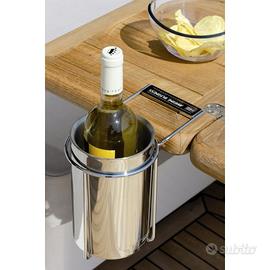 Portabottiglie nuovo Marine Business, ideale per la barca. Poco spazio sul tavolo? Stufo di rovesciare il vino Risolvi questi problemi con il pratico secchiello per vino sospeso in acciaio inossidabile. Con il suo supporto, adattabile a tutti i tipi di tavola, il secchiello del vino può essere appeso al tavolo, lasciando spazio per mangiare ed evitando che la bottiglia cada durante la navigazione o da un'onda improvvisa mentre si è ormeggiati. Anche il secchiello per vino sospeso è isolato, poiché è realizzato con un doppio strato di acciaio inossidabile progettato per mantenere le cose fredde. Istruzioni: acciaio inossidabile magnetico AISI 440.