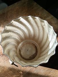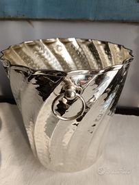 Meraviglioso secchiello o vaso cache-pot in Silver battuto a mano, di manifattura italiana, anni 1950-1960.
