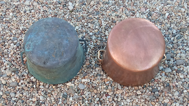 CARATTERISTICHE: Antico cimelio in rame con manico in ottone,D max al vertice 256 mm,pesa oltre kg 1,5 e può all'occorrenza contenere un vaso di fiori