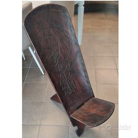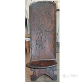 Descrizione:straordinaria sedia monolitica in legno massello africano, intagliata a mano su commissione.