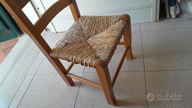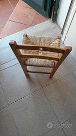 sedia piccola, in legno e paglia,no sintetica,ben conservata,usata pochissimo, anni 70. altz 50cm,larghezza 29,profondità 26.largh spalliera 30cm.