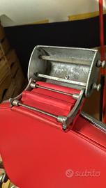 sedia Barberia revisionata, movimento funzionante, rivestimento in pelle rossa rifatto si divide in due parti, base e sedia per il trasporto. solo ritiro a rho