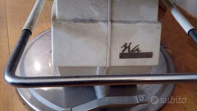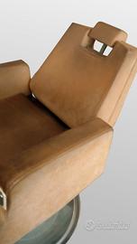 Vendesi rara sedia da barbiere professionale originale prodotta dalla storica azienda Maletti (Bologna), risalente agli anni '50/'60. Un vero pezzo di storia del design industriale italiano, ideale per barber shop, studi di tatuaggi o come elemento d'arredo iconico in un loft. STATO MECCANICO: A differenza di molti pezzi da esposizione, questa sedia è completamente operativa: Pompa idraulica: Il pedale alza e abbassa la seduta senza problemi. Schienale: Reclinabile fluidamente tramite la leva laterale. Poggiatesta: Regolabile in altezza e perfettamente funzionante. ESTETICA E STRUTTURA: La struttura portante e la base circolare sono solide e integre. Le cromature sono originali dell'epoca. Nota: Il rivestimento attuale non è quello originale e presenta segni di usura; la sedia è perfetta come base per un progetto di restauro (rifoderatura) per personalizzarla secondo il proprio stile. CARATTERISTICHE: Marchio: Maletti Bologna (targhetta originale presente sulla base). Design robusto e intramontabile. Facilità di restauro grazie alla meccanica già a posto. PREZZO: €650 trattabili dopo visione. RITIRO: Dato il peso e l'importanza dell'oggetto, si predilige il ritiro a mano a Bologna. Disponibile per qualsiasi prova dei meccanismi sul posto. Modernariato, Barber Shop, Arredamento Industriale, Takara Belmont style, Vintage, Poltrona Barbiere.