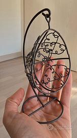 Sedia a dondolo appesa per casa delle bambole o soprammobile in scala 1:12, miniatura di una sedia amaca a dondolo in metallo. Altezza 13 cm e base 5,5 cm