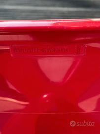 La scocca è realizzata in plastica ABS, in una tonalità di rosso bordeaux o “rosso bue”, fissata su una struttura in metallo.