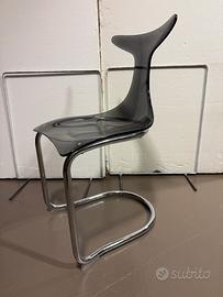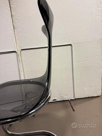 Seduta Progettate da Gino Carollo per Ciacci Kreaty, si propone splendida sedia dal design 100% italiano, realizzata con una struttura in alluminio pressofuso opaco satinato, e la seduta realizzata in policarbonato grigio opaco trasparente