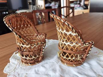 Sedie per bambola tipo poltroncina in vimini alta 17 cm e larga 12 cm vendo a 10 euro l'una. Per info tel 324 6126425