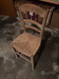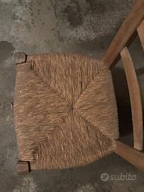 Vendo sedia rustica originale d’epoca, in legno massello con seduta in paglia intrecciata a mano.