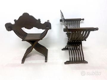 Sedia "Savonarola" realizzata interamente in noce italiana. Provenienza: Italia Epoca: fine '800 Dimensioni: L69 x P49 x H94 cm Richiesta per coppia: €700,00