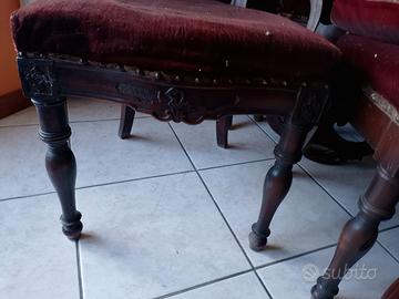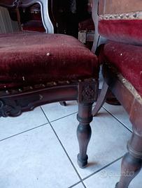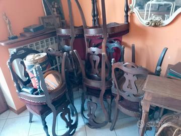 Cedo ,solo in lotto, 10 sedie antiche fine 800 inizi 900 in legno di noce. Finemente lavorate e con tessuto originale dell' epoca. Ovviamente necessitano piccoli lavori di restauro, ma nulla di eccessivo. Ancora in patina originale struttura sana e non intaccata da umidità o tarlature. Ritiro a carico dell' acquirente Prezzo inteso cadauna