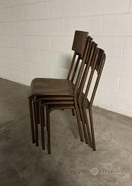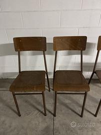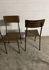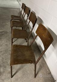 4 sedie da scuola vintage, originali anni 70. Legno e ferro smaltato. Mostreranno piccole imperfezioni e piccoli segni del tempo