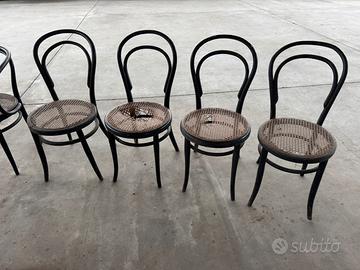 Originali Thonet: 4 sedie e una poltroncina. Da rimpagliare.