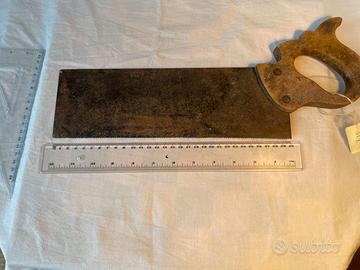 Riscopri il fascino degli antichi mestieri con questa sega a mano d’epoca, un autentico attrezzo da falegname dei primi del '900. Caratterizzata da una lama robusta in acciaio brunito e da un manico ergonomico in legno massiccio, questa sega è un perfetto pezzo da collezione o da esposizione.
