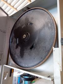 Sega a nastro marca Meber di Carpi, con un piano di lavoro da 81x98 alta 2,40m sistema di aspirazione incluso e con un motore stella triangolo da 4/4.6 kW con presa da 32A salvamotore e tutte le sicurezze funzionanti, compreso il freno motore, sughero sulle ruote appena sostituito, pulita e ingrassata lama in ottime condizioni contattatemi per altre informazioni aggiuntive.