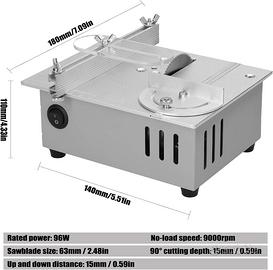 Descrizione dell'oggetto fatta dal venditore Specifiche: Nome: sega da tavolo Materiale: metallo Potenza nominale: 96 W Velocità a vuoto: 9000 giri/min Dimensioni della lama: 63 mm/2,48 pollici 90° profondità di taglio: 15 mm/0,59 pollici Distanza su e giù: 15 mm/0,59 pollici Dimensioni articolo: 180 * 140 * 110 mm / 7,09 * 5,51 * 4,33 pollici Peso dell'articolo: 1482 g/3,27 libbre Dimensioni confezione: 295 * 230 * 100 mm / 11,61 * 9,06 * 3..94 pollici Peso della confezione: 1703 g/3,75 libbre Lista di imballaggio: 1 * Host per sega da tavolo 1 * Fonte di alimentazione 1 * Staffa 1 * Righello a forma di T 1 * Protezione trasparente 2 * Chiave inglese Note: a causa delle diverse impostazioni di schermi e monitor e dell’illuminazione, il colore reale dell'oggetto può differire leggermente da quello nelle foto. Si prega di considerare differenze di 1-3 mm a causa della misurazione manuale. Grazie per la comprensione.