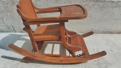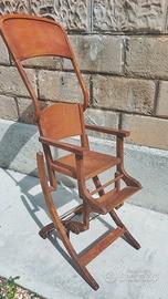 Seggiolone per bambini in legno di faggio, stile tonet anni '30/'40, trasformabile in tre diverse posizioni.