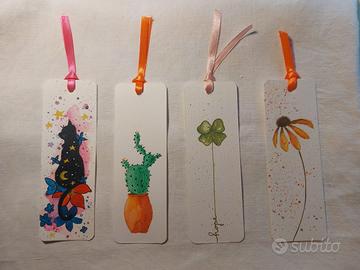 Bellissimi segnalibri dipinti a mano su cartoncino. Temi vari. Prezzo 4/5 euro ciascuno a seconda della dimensione.
