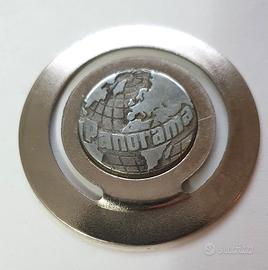Segnalibro vintage in metallo con design a forma di globo terrestre e logo Panorama. Gadget da collezione della rivista Panorama degli anni '80.