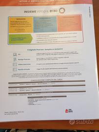 Libro per la scuola media, poche pagine evidenziate/compilate, completo del fascicolo "Competenze e inclusione"