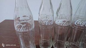 Sei Bottiglie di vetro vintage di Coca-Cola.Logo storico di Coca-Cola anni '70 in rilievo e serigrafati in bianco.Altezza 25 cm.