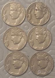 Sei monete da 20 centesimi anno di conio dal 1908 al 1913 circolate con usura e patina del tempo