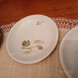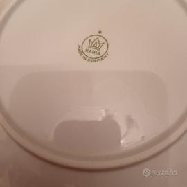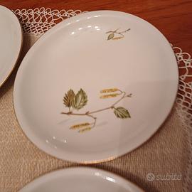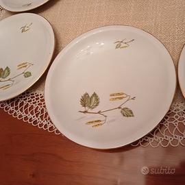 Vendo servizio da sei di splendidi piatti da collezione vintage KAHLA rotondi in porcellana bianca MADE IN GERMANY, profilo dorato e disegno floreale. Da collezione ma anche elegantissimi piatti da dessert/antipasto. In ottime condizioni, come foto, come visti e piaciuti. Solo consegna a mano a Pavia.