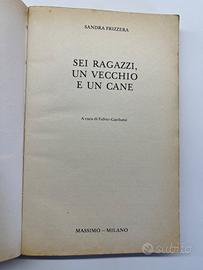 Libro Sei ragazzi un vecchio e un cane di Sandra Frizzera usato in buone condizioni con pagine ingiallite dovute al passare del tempo.