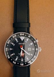 Seiko kinetic gmt sportura cal. 5m85 Raramente usato condizioni estetiche ottime A riguardo le caratteristiche tecniche rimando al sito Seiko. Precedenza alla vendita "visto e piaciuto tra privati "di persona. Presente il suo libretto d'uso originale ed una fibia cinturino originale Seiko mai utilizzata. La scatola è Seiko ma non riferita a questo specifico modello.