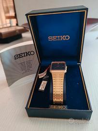 Vendo elegante orologio vintage Seiko Quartz, modello anni ’80 con referenza **6431-****, in condizioni NOS (New Old Stock). L’orologio è nuovo, mai indossato, completo di: ✔️ Scatola originale Seiko ✔️ Garanzia originale ✔️ Cartellino originale ✔️ Cinturino originale Seiko Caratteristiche: Movimento al quarzo (affidabile e preciso) Cassa rettangolare dorata (placcata oro) Quadrante nero elegante stile dress Design classico vintage molto ricercato Condizioni: Stato estetico eccellente (come da foto) Fondello con lievi segni da conservazione Funzionante (se confermi, aggiungilo 👍) Perfetto per collezionisti o per chi cerca un orologio vintage elegante e senza tempo. Prezzo trattabile