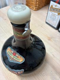 Propongo selezione di bottiglie di liquori vintage da collezione, tutte originali, mai aperte, provenienti da collezione privata. Le bottiglie sono vendute singolarmente, con possibilità di accordi per acquisti multipli. ⚠️ Tutti gli oggetti sono venduti come bottiglie da collezione/esposizione; contenuto non garantito per consumo. 🍒 CERASEELLA – CHERRY BRANDY Bottiglia panciuta fortemente decorata Etichetta storica “Cherry Brandy – Ceraseella” Tappo in vetro lattimo con chiusura metallica Produzione italiana Periodo stimato: anni ’40 / primi ’50 Bottiglia sigillata 💶 PREZZO: 169 € 🍫 STOCK – CREMA CACAO Storica bottiglia Stock Produzione: Trieste Periodo: anni ’50 / primi ’60 Etichetta storica con ricetta cocktail “Alexander” sul retro Fascetta fiscale italiana presente Bottiglia sigillata 💶 PREZZO: 89 € 🍊 COINTREAU – LIQUEUR D’ANGERS (con codice a barre) Bottiglie originali anni ’80 / primi ’90 Presenza di codice a barre sul retro Fascette fiscali italiane presenti (con normale usura) Bottiglie sigillate Disponibili 5 bottiglie identiche 💶 Prezzi: Singola bottiglia: 45 € Lotto completo 5 bottiglie: 199 €