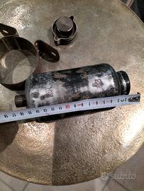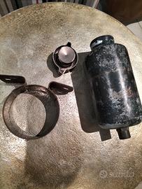 serbatoio olio freni auto epoca in alluminio completo di tappo, staffa fissaggio e innesto mandata, con interno perfetto non ossidato, originale dell'epoca e mai montato. misure come da foto.