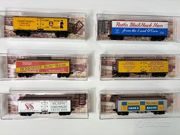 12 carri Micro Trains serie completa frigorifero trasporto carni. Ganci Kadee