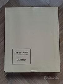 Serie completa di 5 piatti murali della collezione "I Re di Sicilia - I Re Normanni", con incisioni in oro 24 carati, di Nicasio Catanese. I 5 piatti rappresentano , Ruggero II (in alto a sinistra), Guglielmo I (in alto a destra), Tancredi (al centro), Guglielmo II (in basso a sinistra) e Guglielmo III (in basso a destra). Realizzati in porcellana e oro 24k, questi piatti sono stati prodotti in edizione limitata dallo Studio d'Arte Morbelli di Milano sotto la direzione di Goliardo Vecchi. Inclusa cornice di pregio. Disponibile spedizione privata. Misure cornice: 36,2x43,2 cm.