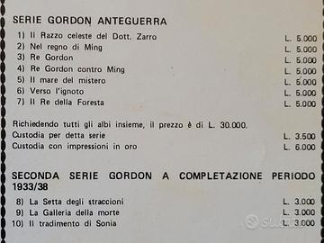 Serie di Fumetti di “Flash Gordon” Ristampa Anastatica 1. Il Razzo celeste del Dott. Zarro 2. Nel regno di Ming 3. Re Gordon 4. Re Gordon contro Ming 5. Il mare del mistero 6. Verso l'ignoto 7. Il Re della Foresta 8. La Setta degli straccioni 9. La Galleria della morte 10. Il tradimento di Sonia 11. Il principe Alan 12. La regina dei ghiacci Tutti in Buone condizioni Autore Alex Raymond Editore Casa Editrice Nerbini