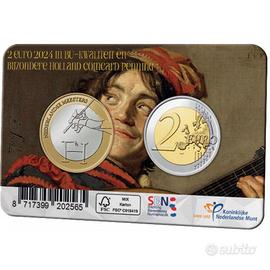 Questo oggetto è un set numismatico da collezione emesso dalla Zecca Reale olandese (fior di conio), dedicato a famosi pittori olandesi: Frans Hals (1580 – 1666) Jan Havickszoon Steen (1626 - 1679). Il contenuto include due monete commemorative da 2 euro, una anno 2022 e una anno 2024, raffiguranti Re Guglielmo Alessandro e una medaglia speciale dedicata agli artisti. Condizioni eccellenti (non emesse per la circolazione)