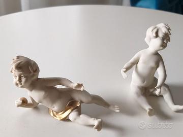 Mini collezione di 4 puttini e 1 cane realizzati con maestria da manifattura Nove Bassano in bellissima ceramica bisquit e finitura oro. Un delizioso regalo per un collezionista, molto decorativi e allegri.