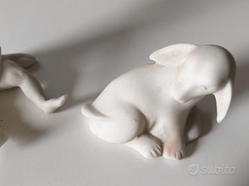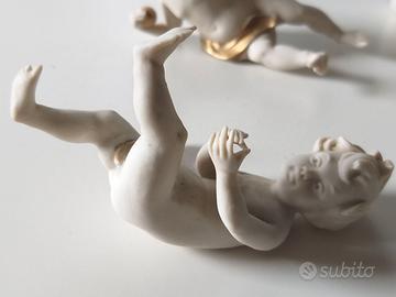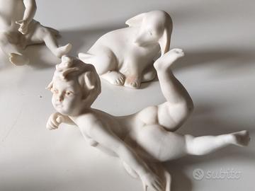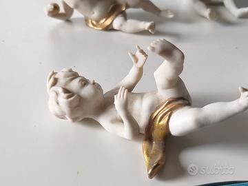 Mini collezione di 4 puttini e 1 cane realizzati con maestria da manifattura Nove Bassano in bellissima ceramica bisquit e finitura oro. Un delizioso regalo per un collezionista, molto decorativi e allegri. Non si vendono separatamente. Grazie.