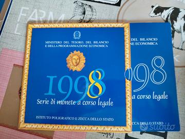 serie divisionale di monete annata 1998 contiene 12 valori di cui una moneta da L. 1000 in argento commemorativa di Gian Lorenzo Bernini ed una moneta da L. 500 in argento tipologia Caravelle