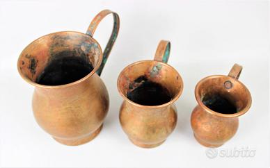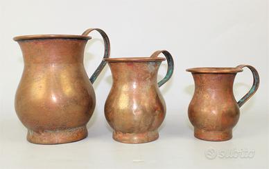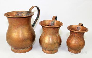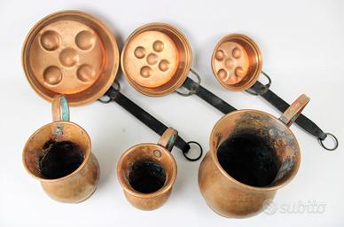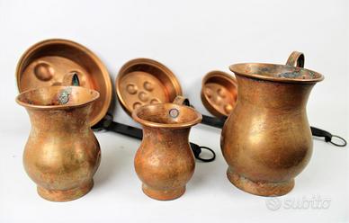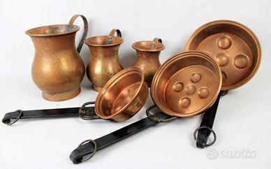 Serie di 6 oggetti in rame battuti a mano composta da: