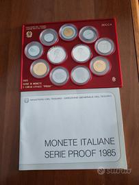 Bellissima serie divisionale 1985 in Fondo specchio (PROOF) DELL'IPZS, completa di contenitore e certificato originale. Dedicata ad Alessandro Manzoni. Contiene la 500 lire caravelle in argento e la 500 lire in argento Manzoni.