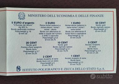 Serie divisionale di monete "Proof" del 2003, prodotta dall'Italia e dedicata al tema "L'Europa del lavoro".