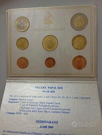 Splendida serie divisionale euro Città del Vaticano " Sede Vacante" anno di emissione 2005 coniata dopo la morte di Papa Giovanni Paolo II. Serie completa di 8 monete in confezione originale della zecca di Roma. Monete mai circolate e in condizioni FDC. Tiratura complessiva: 60.000. Si tratta di una serie molto ricercata dai collezionisti e di difficile reperimento.