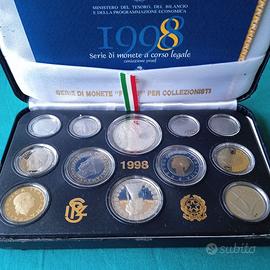 Serie divisionale 1998 proof per collezionisti, fior di conio, fondo specchio, con cofanetto dove la plastica presenta segni di degrado per il tempo trascorso. Offerta trattabile.