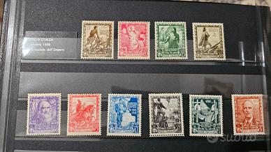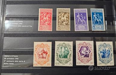 varie serie Regno d'Italia ed epoca fascista da 1891 a 1944 tutti nuovi se non indicato. prezzi trattabili 1891 effige Umberto I (2 valori) € 30 1911 cinquantenario unità d'Italia (4 valori) € 10 1921 600 anni morte di Dante Alighieri (3 valori incompleta) € 8 1921 anniversario della vittoria (4 valori) € 4 1924 Anno santo 1925 (6 valori) € 20 1929 morte di Vittorio Emanuele II € 10 1930 nozze del principe Umberto I e Maria José (3 valori) € 5 1934 invenzione della dinamo (2 valori) € 2 1938 proclamazione dell'impero (10 valori) € 40 1941 nascita Tito Livio (4 valori) € 5 1942 300 anni morte Galileo Galilei (4 valori) € 4 1944 monumenti distrutti I serie (4 valori) € 1 1944 fratelli bandiera (3 valori) € 3