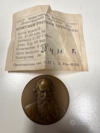Vendo serie completa di medaglie commemorative in bronzo dedicate ai Classici della Letteratura Russa (Pushkin, Tolstoj, Dostoevskij, Gogol, Turgenev, Čechov ecc.).