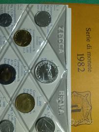 serie di monete FDC dello stato italiano 31 pezzi anni 1969/1970manca i 1000 lire d'argento in questa serie/1980/1981/1982 in ogni serie ci sono 500 lire di argento oltre una lira. due lire .cinque lire dieci.venti cinquanta e cento lire...li vendo a 30 euro al pezzo