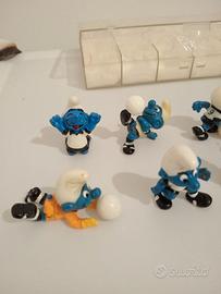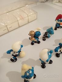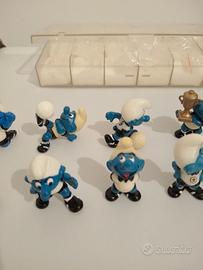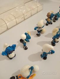 Serie Tedesca Die Fußball-Schlümpfe 1988 puffi PeyoSerie tedesca puffi calciatori del 1988. Ci sono tutti i personaggi compresi i tre puffi con il pallone che sono rari e hanno un elevato valore economico. Unico neo, il puffo numero 3 ha un buco sul cappello come si vede in foto. Per il resto sono tutti in ottime condizioni e c'è anche il contenitore