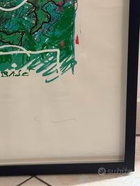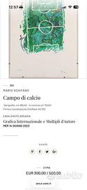 Campo di calcio di Mario Schifano, esemplare speculare valutato dalle 300 alle 500 euro e battuto all’asta a 359 euro su sito anca-aste.it. In perfette condizioni, con firma fronte e retro, incorniciato con cornice elegante a rilievo, perfetto da appendere, bellissimo.